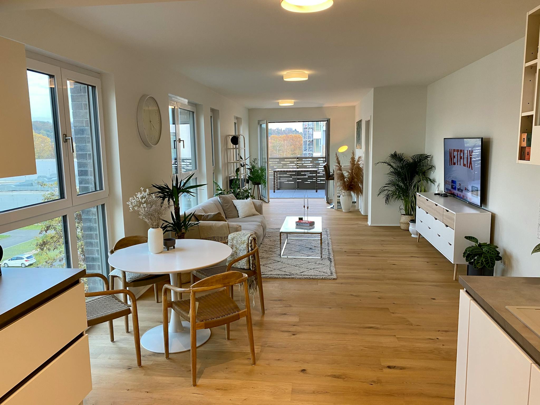 Non-SmokingNot allowedMove in and feel good. Everything you need for a short or long stay is available. The beautiful and modern apartment is equipped to a very high standard. The focus is on the 45m2 living room with an attached kitchen-cum-living room. The underfloor heating in the entire apartment ensures a pleasant room temperature. The high-quality, walk-in closet creates perfect order for your clothes. This apartment turns a nice work corner into a home office. Located on the 5th floor and thanks to the floor-to-ceiling windows, the apartment always appears bright and inviting without being disturbed by neighbours. The blinds can also create complete darkness. Carefully selected decoration provides that extra kick of cosiness.