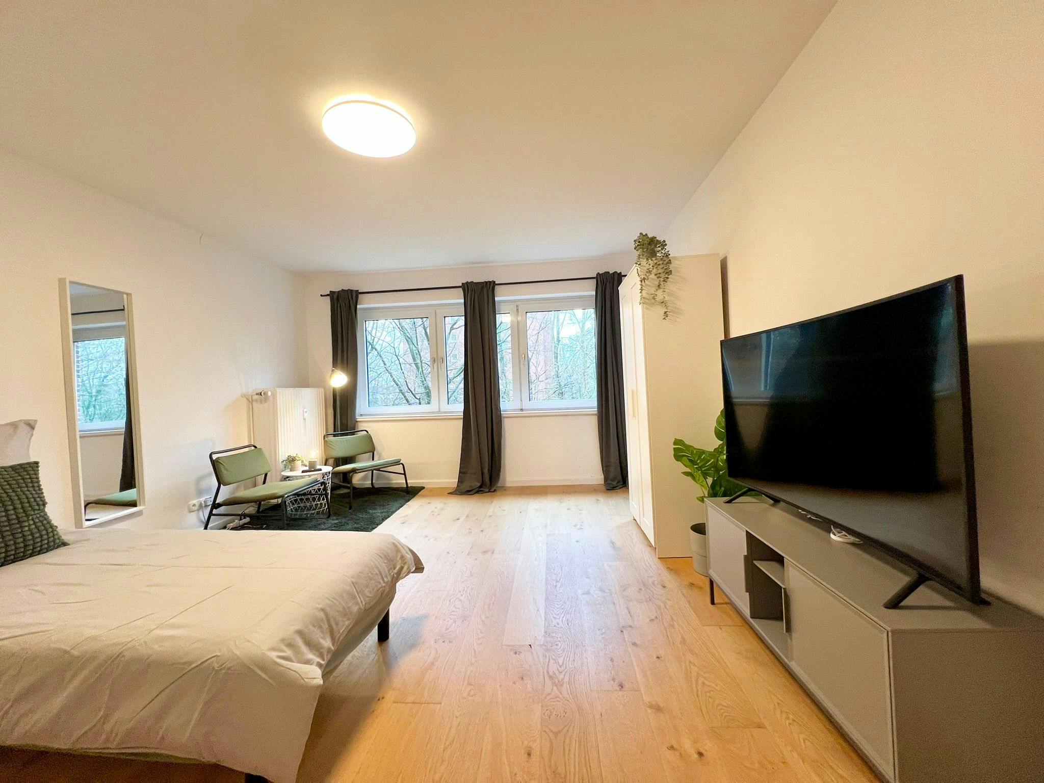 Non-SmokingNot allowedhis fully renovated apartment in Hamburg-Horn offers approx. 80 sqm of living space and combines comfort, functionality and a pleasant living atmosphere. The apartment features three well-proportioned rooms, a balcony, and a modern, fully equipped interior. Thoughtfully furnished and designed for everyday living, it comfortably accommodates up to 5 people, making it ideal for families, colleagues or longer stays. Key features: Fully renovated apartment Approx. 80 sqm of living space 3 rooms Balcony Modern, fully equipped furnishings Suitable for up to 5 people Whether for temporary living, business stays or family accommodation, this apartment offers a comfortable and practical home in a well-connected Hamburg location.